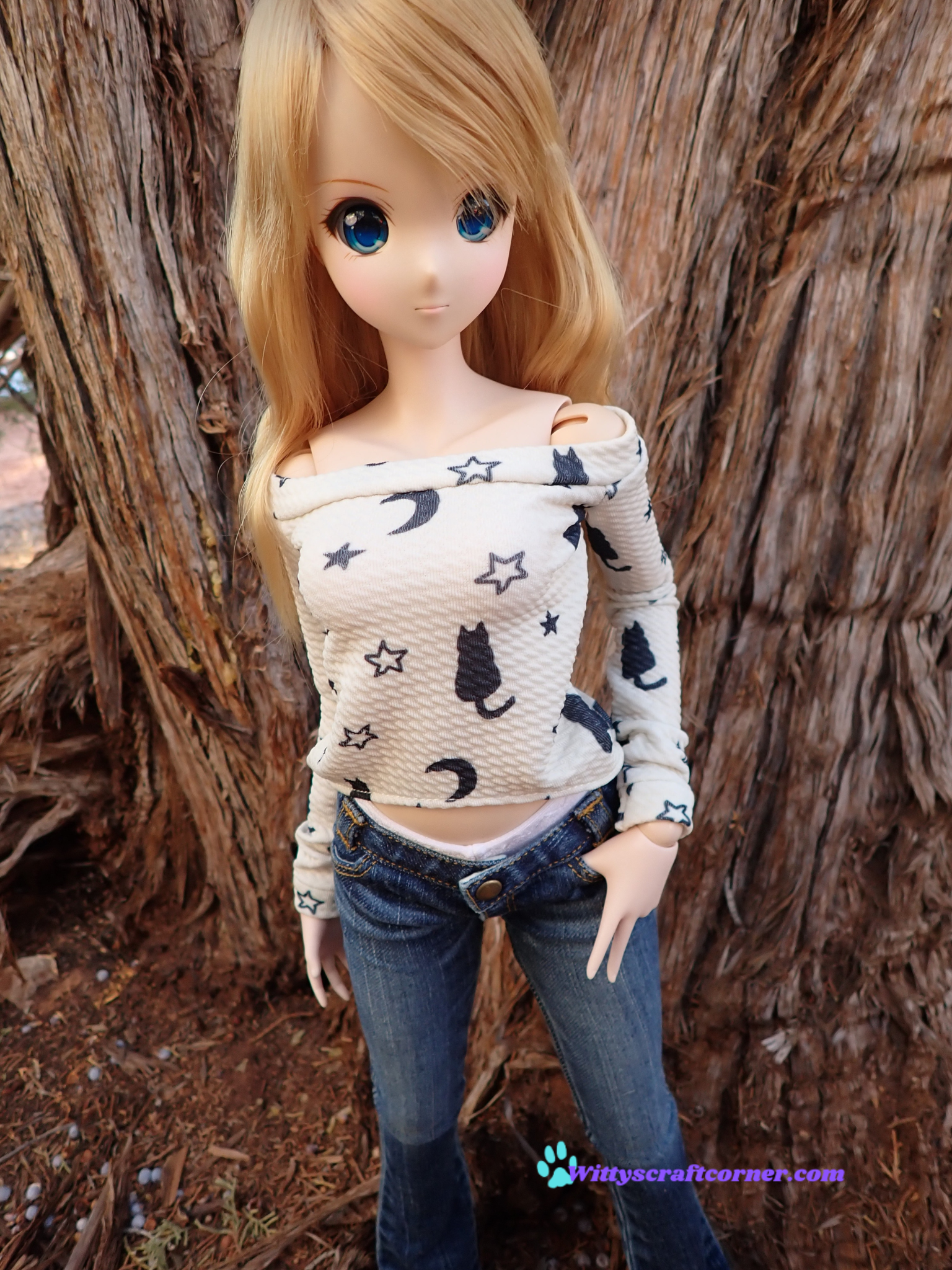 MADE TO ORDER Smart doll Classic or Pear black cat top stars and moons