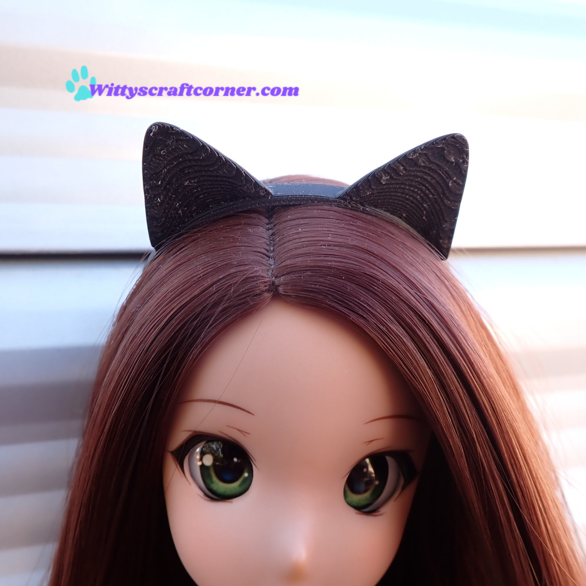 This smart doll headband features cute little cat ears, perfect for Halloween! These are printed in a matte black PLA.